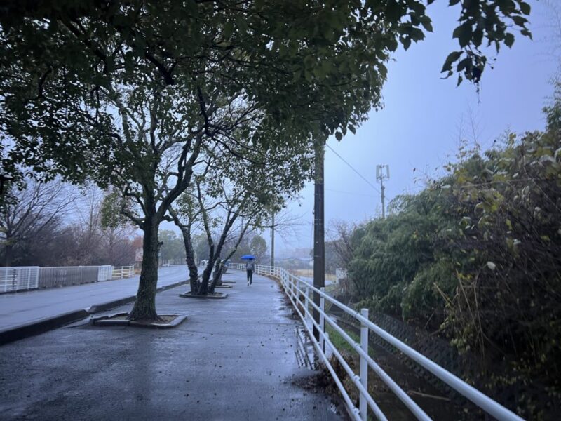 大会駐車場(真如苑阪内川河川敷)に到着しようとしたその時、車のラジオから徳永英明さんのレイニーブルーが流れた。