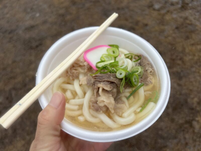 レース後は荷物を受け取り、おもてなしチケットでうどんをいただいた。