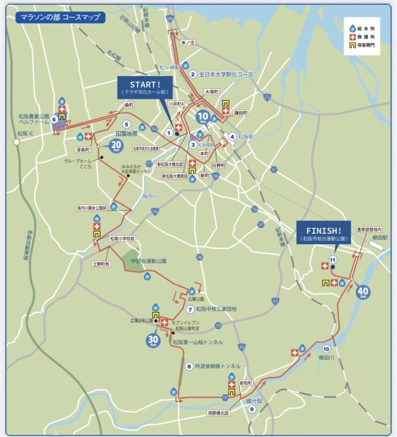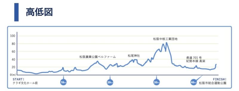 スタートはクラギ文化ホール前、ゴールは松阪市総合運動公園。