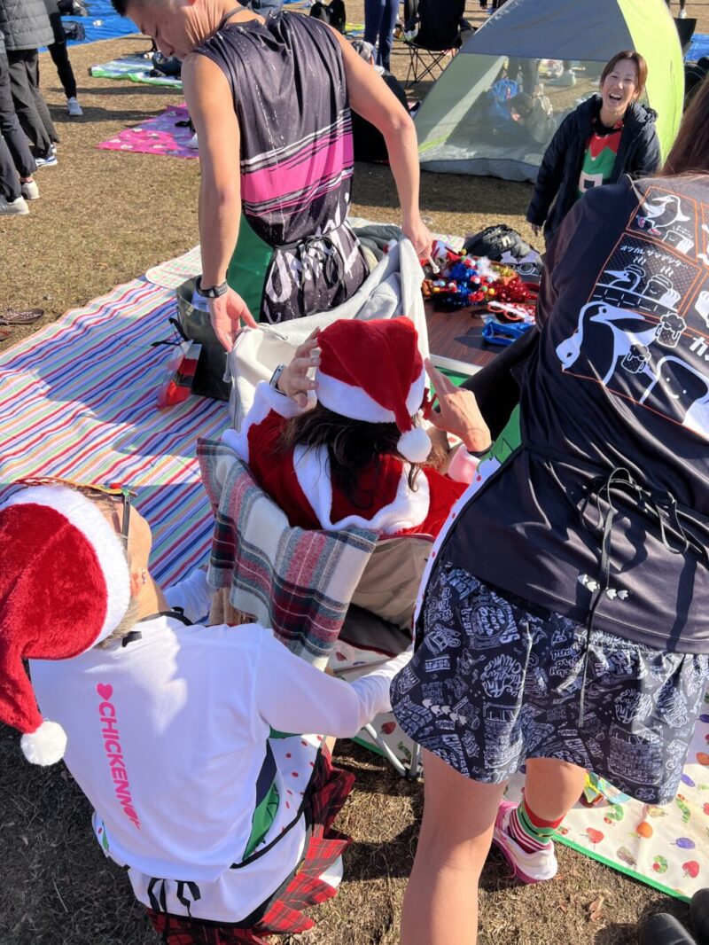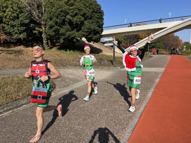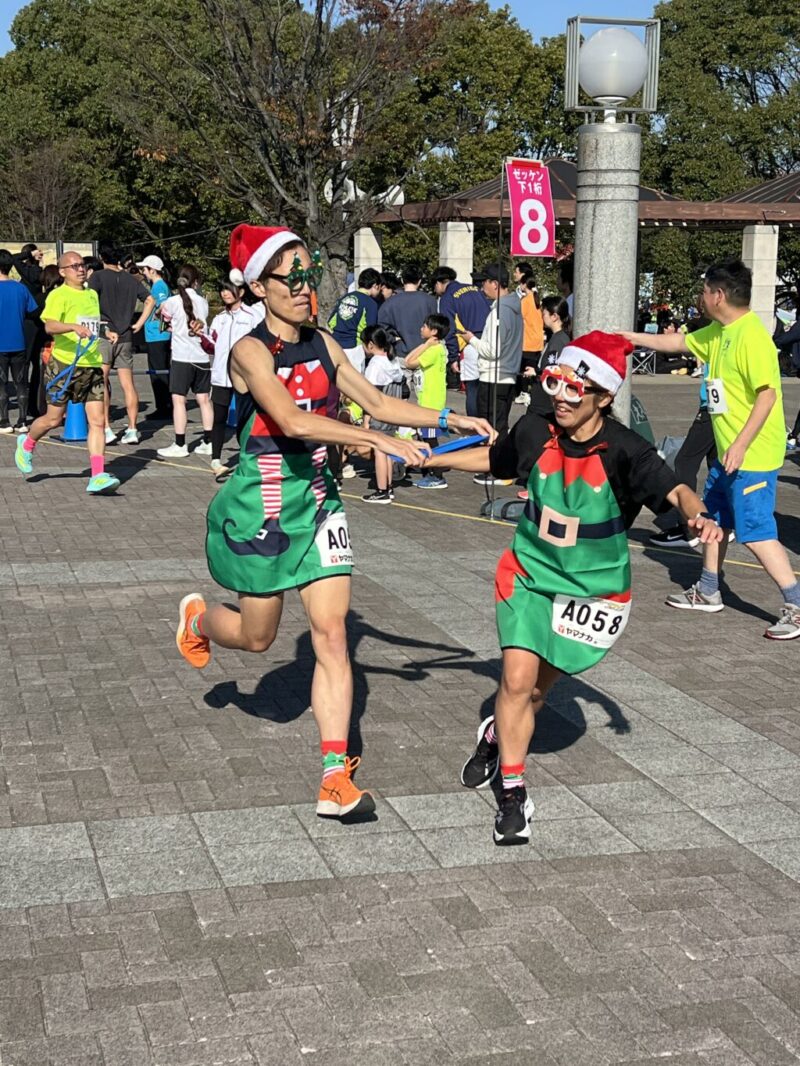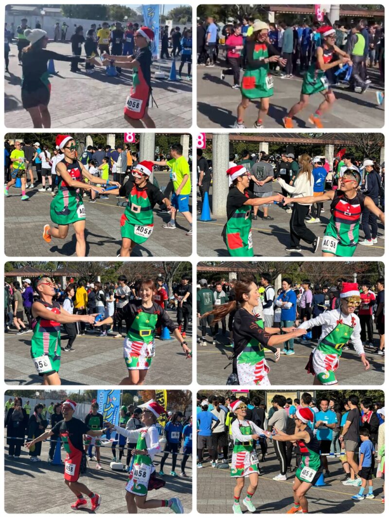 クリスマス仮装で走るリレーマラソン。