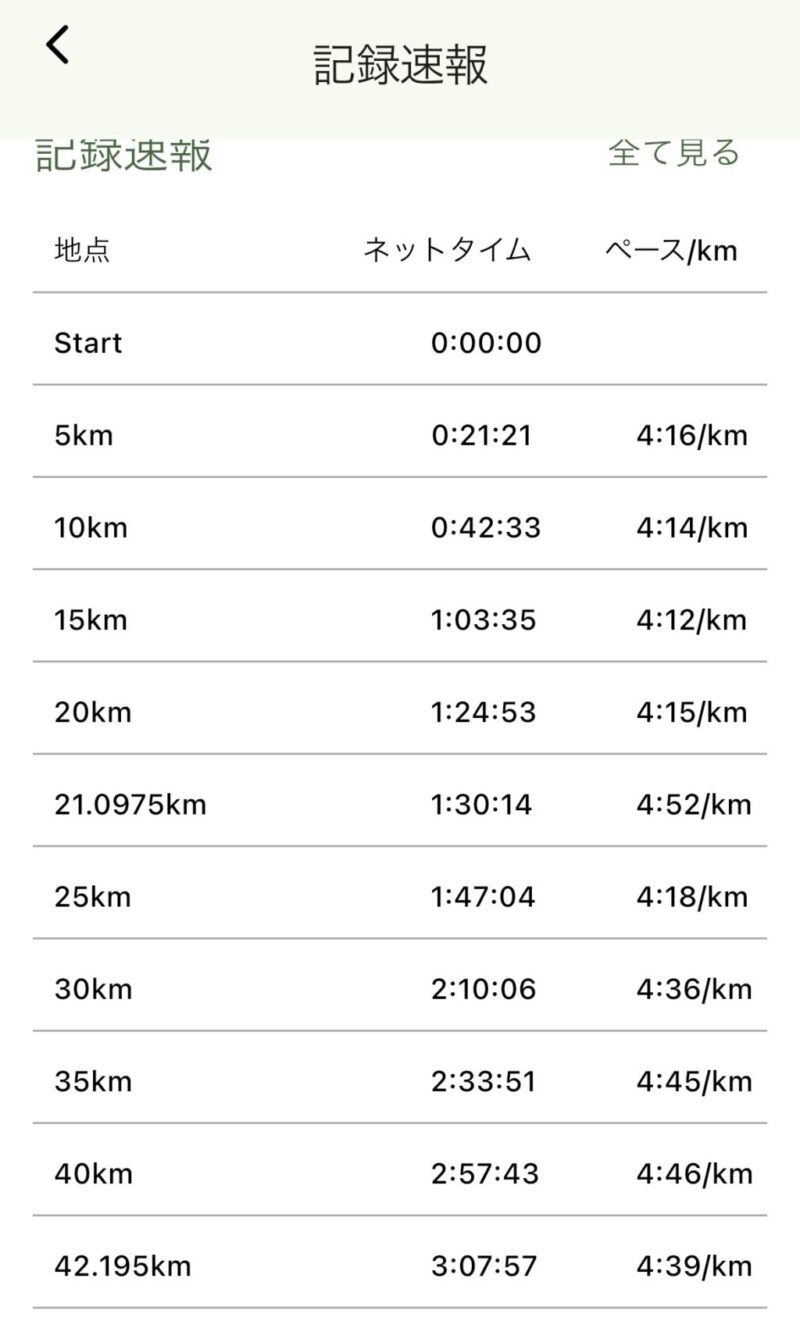25kmからペースをキープできなくなり、あとはグッとこらえる展開に。