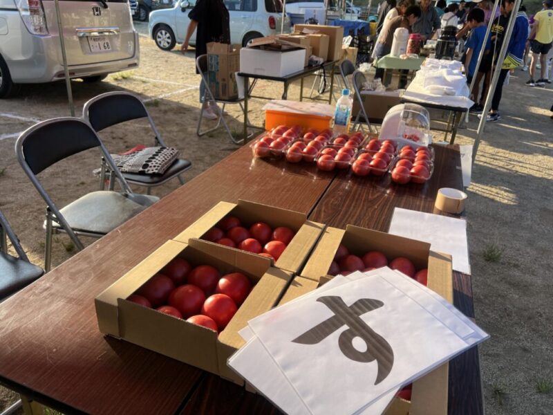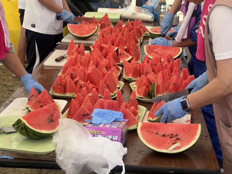ゴール後はお楽しみのスイカ、トマト、キュウリの食べ放題。