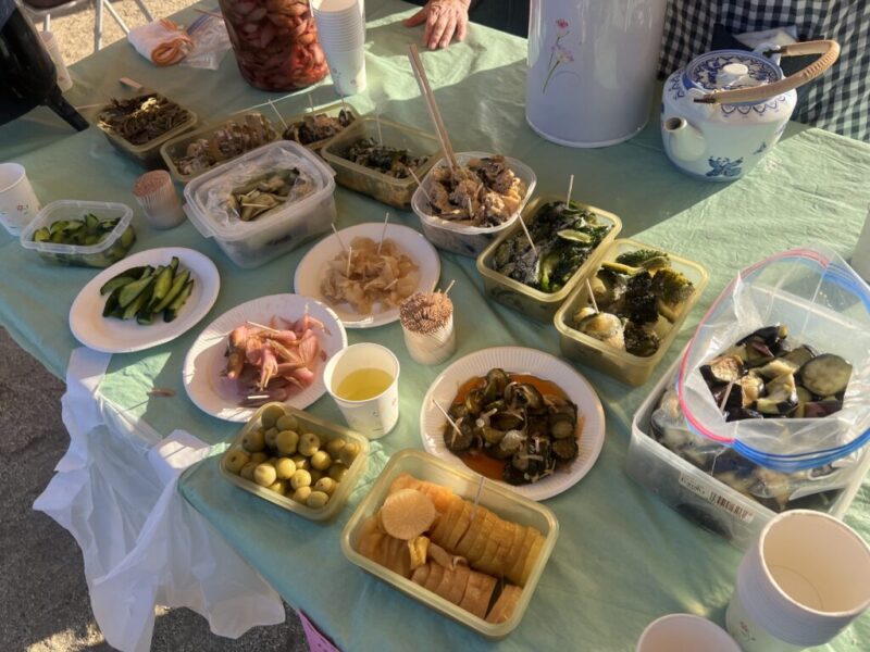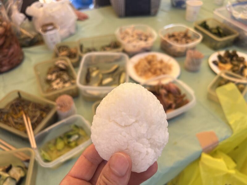地元の方が手作りしたお漬物も、持参したおにぎりと一緒に無料でいただけちゃうのです。