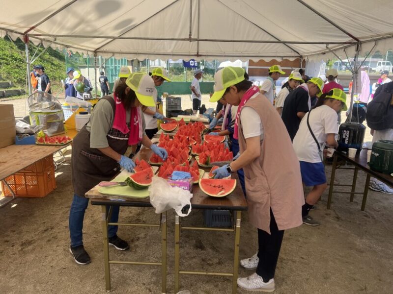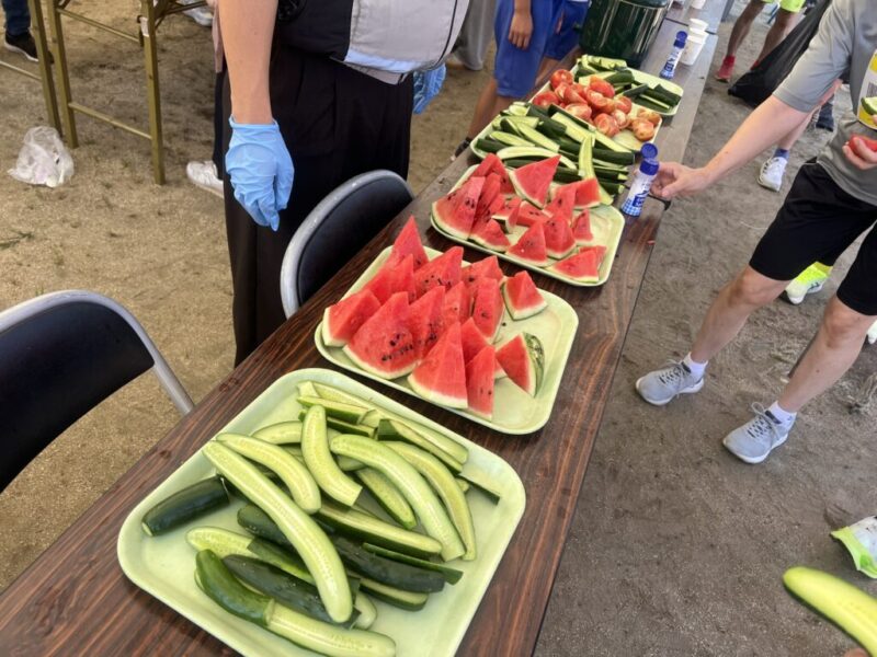 ゴール後はスイカ、トマト、キュウリの食べ放題が待っている。