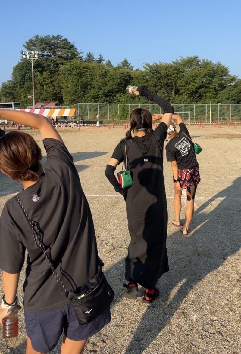 途中、ラジオ体操の音楽が流れたので体をほぐす。